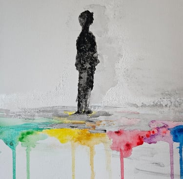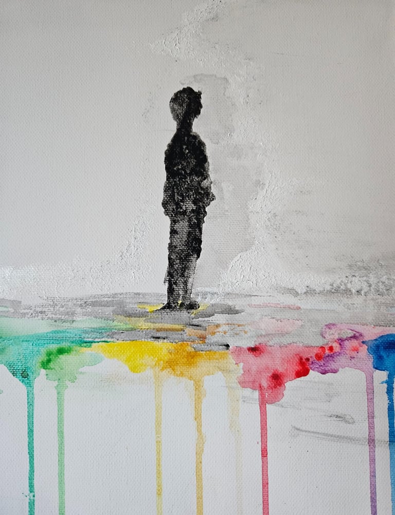 Tai mano paveikslas, kuriame matau išsigandusį, vienišą, paklydusį, juodą žmogų. Tačiau jame slypi daug jausmų, spalvų. Vilties...